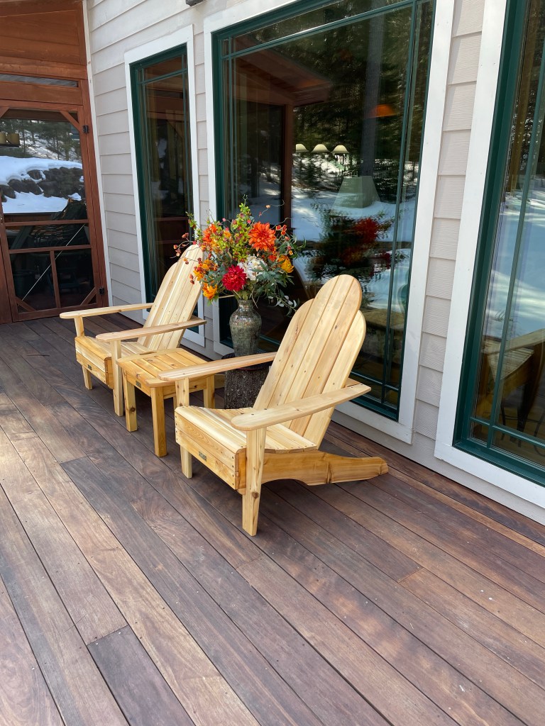 Built for comfort and made to endure, this Adirondack chair set includes two matching chairs and a coordinating side table. Designed with wide armrests, contoured backs, and weather-resistant finishes, the set brings classic Adirondack style to your deck, patio, or lakeside retreat. Whether you’re relaxing solo or sharing a quiet moment outdoors, this handcrafted set delivers timeless comfort and lasting quality.